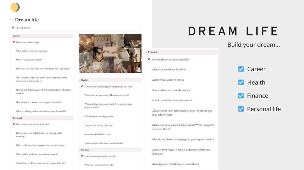 - Dream Life: Imagine and explore the life you want to create for yourself.