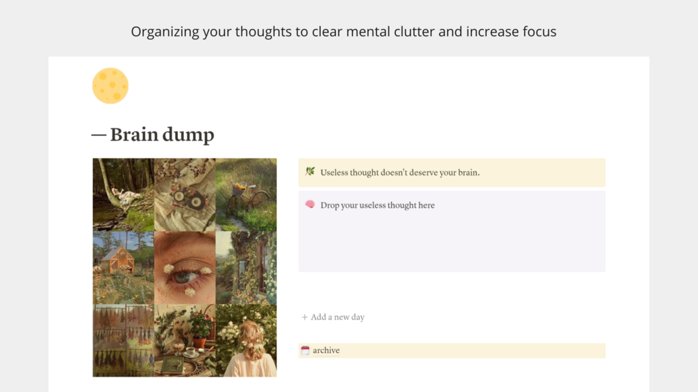 - Brain Dump: Organizing your thoughts to clear mental clutter and increase focus.