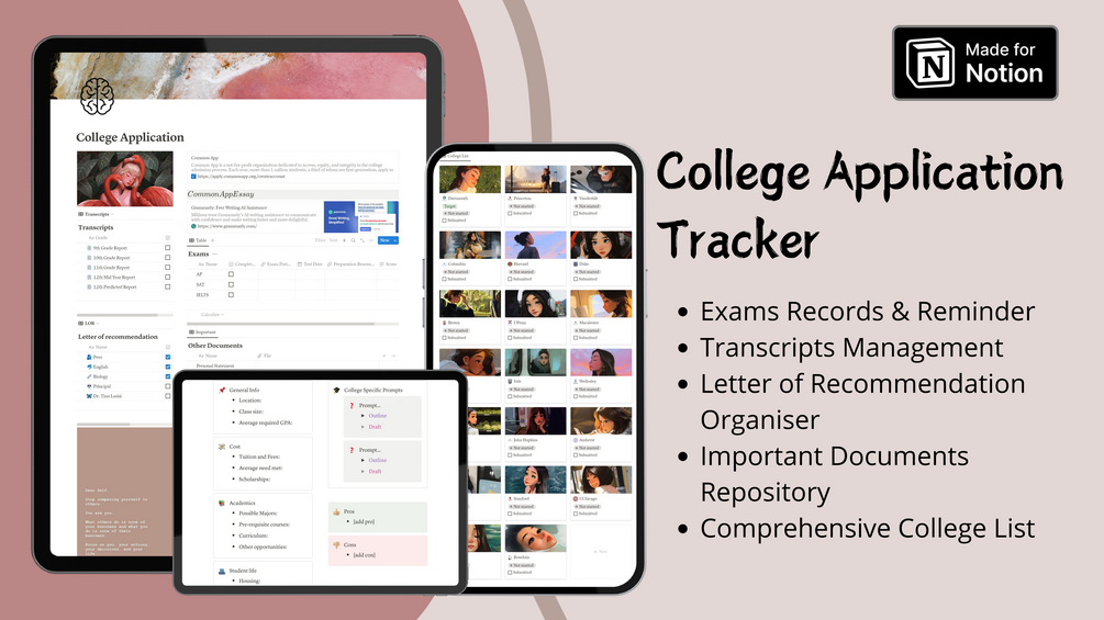 4. All-in-one College Application Tracker: Streamline your college application process- Organize exam records, transcripts, recommendations, and crucial documents. Gain insights into colleges, track applications, and stay on top of deadlines with automated reminders.